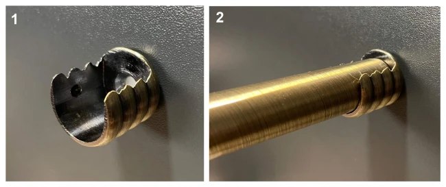- Es wird verwendet, um die Gardinenstange in kleineren Räumen zu montieren, sodass es an angrenzenden Wänden oder in Nischen montiert werden kann