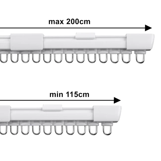 - Dank der Teleskopkonstruktion können Sie die ideale Länge der Schiene an die Größe Ihres Fensters und Ihres Zimmers anpassen