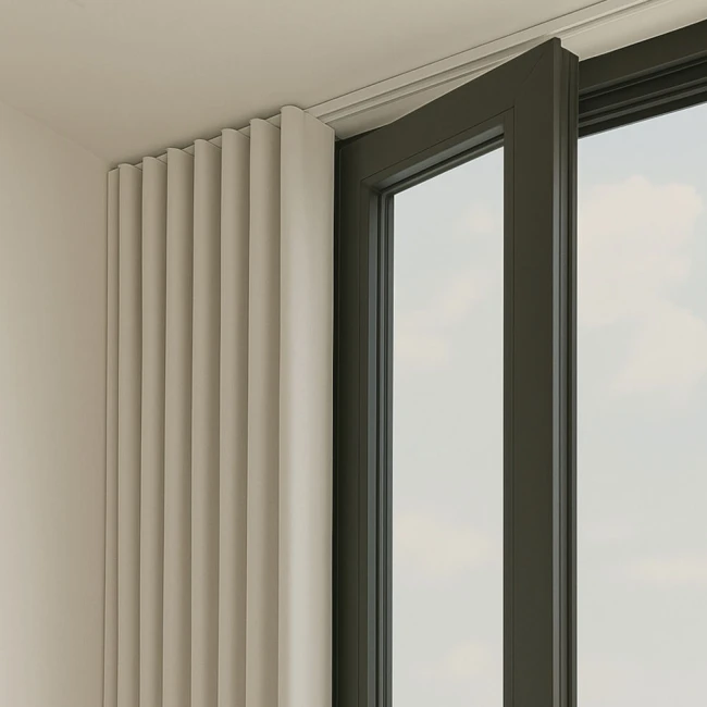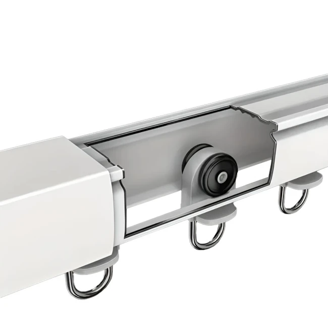 - Schienen mit Rollen und Metallhaken - garantieren ein leichtes Gleiten von Gardinen und Vorhängen
