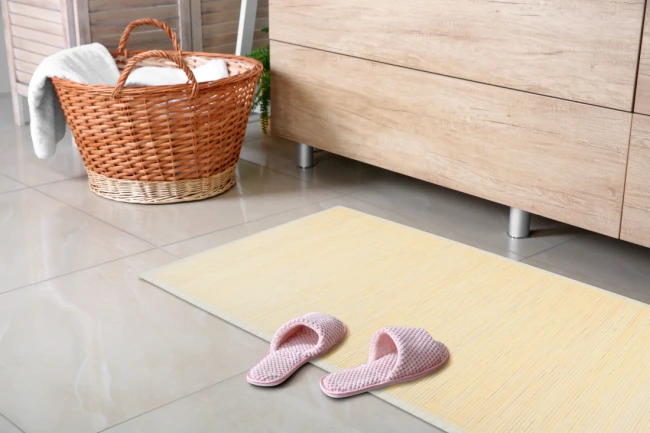 - Die Matte besteht aus hochwertigen Bambusfasern, die sich durch ihre Feuchtigkeitsresistenz und Strapazierfähigkeit auszeichnen und somit ideal für Bereiche wie Bad, Sauna oder Küche sind.
