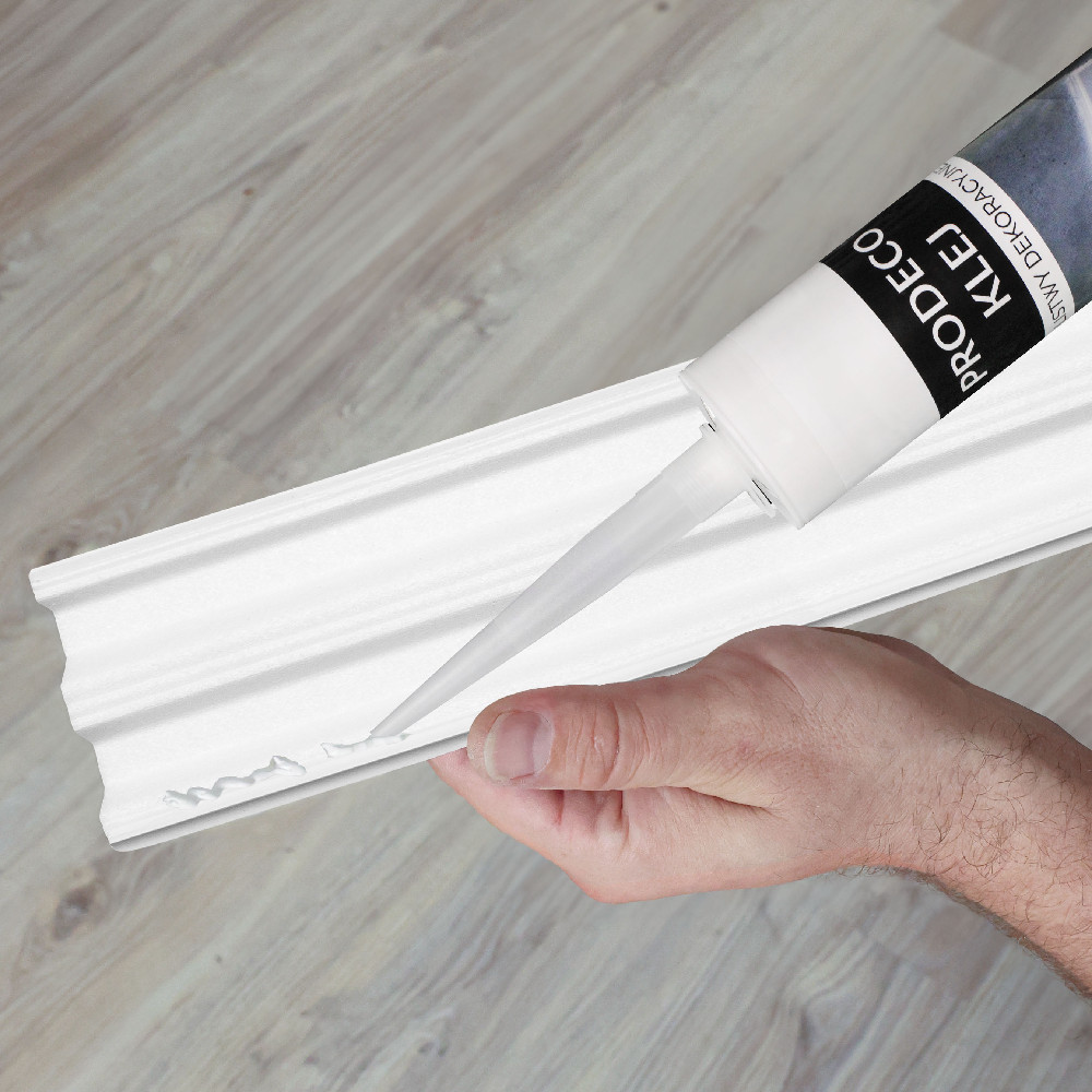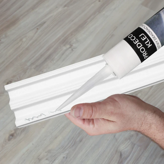 Für die Montage der Wandleiste empfehlen wir den PRODECO-Kleber. Dank ihm wird die Montage schnell, einfach und dauerhaft sein.
