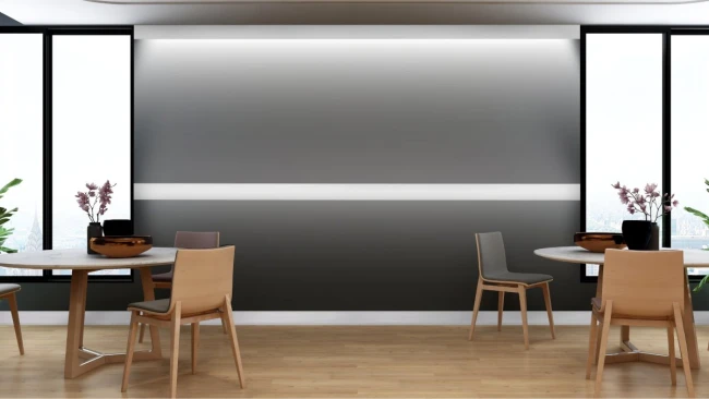 - Die Deckenleiste schafft einen eleganten und fließenden Übergang zwischen Decke und Wand und verleiht dem Raum Einheitlichkeit und einen modernen Charakter.