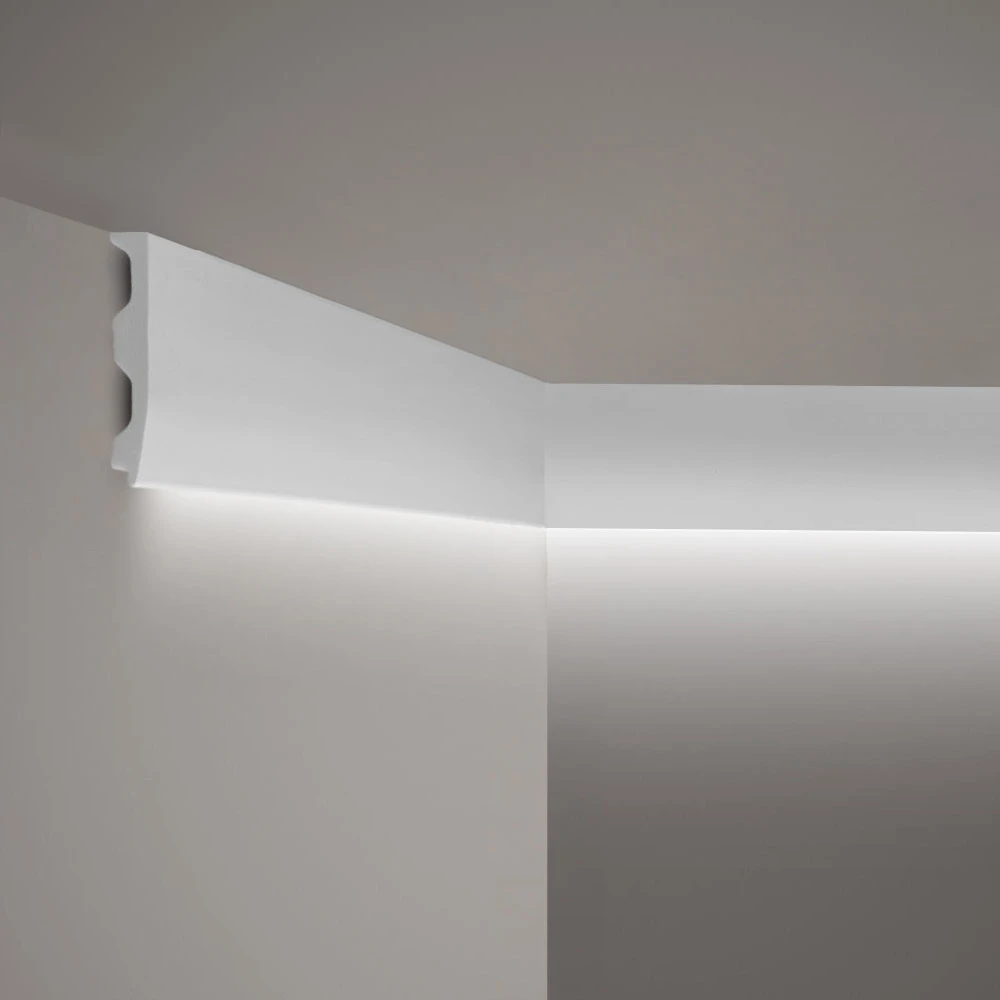 Die Leisten sind für die Montage eines LED-Streifens geeignet, was eine dezente und gleichmäßige Ausleuchtung des Raumes ermöglicht. Sie blockieren das Licht effektiv und sorgen für eine gleichmäßige, weiche Beleuchtung.