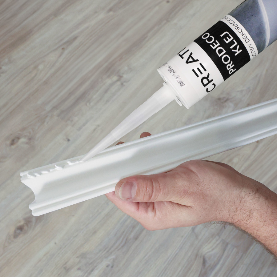 Für die Montage der Wandleiste empfehlen wir den PRODECO-Kleber. Dank ihm wird die Montage schnell, einfach und dauerhaft sein.