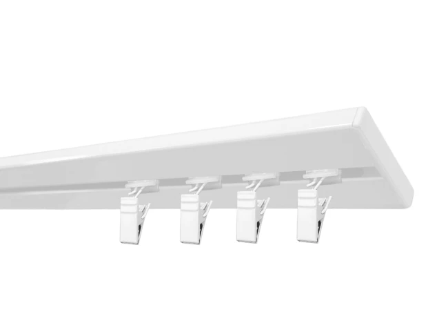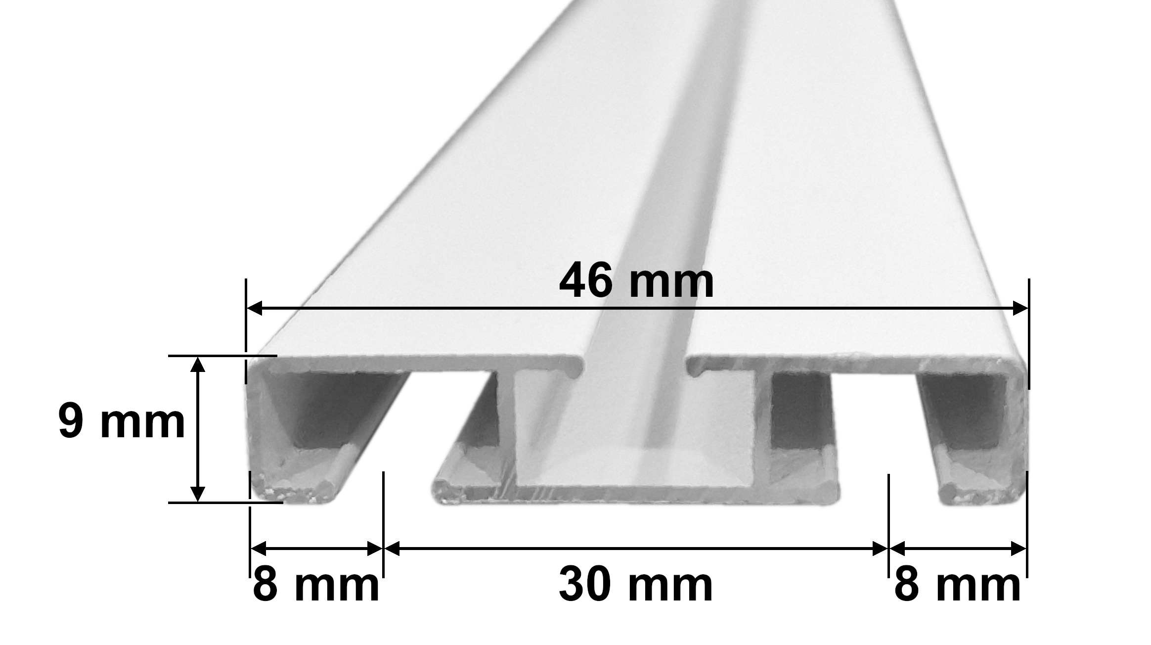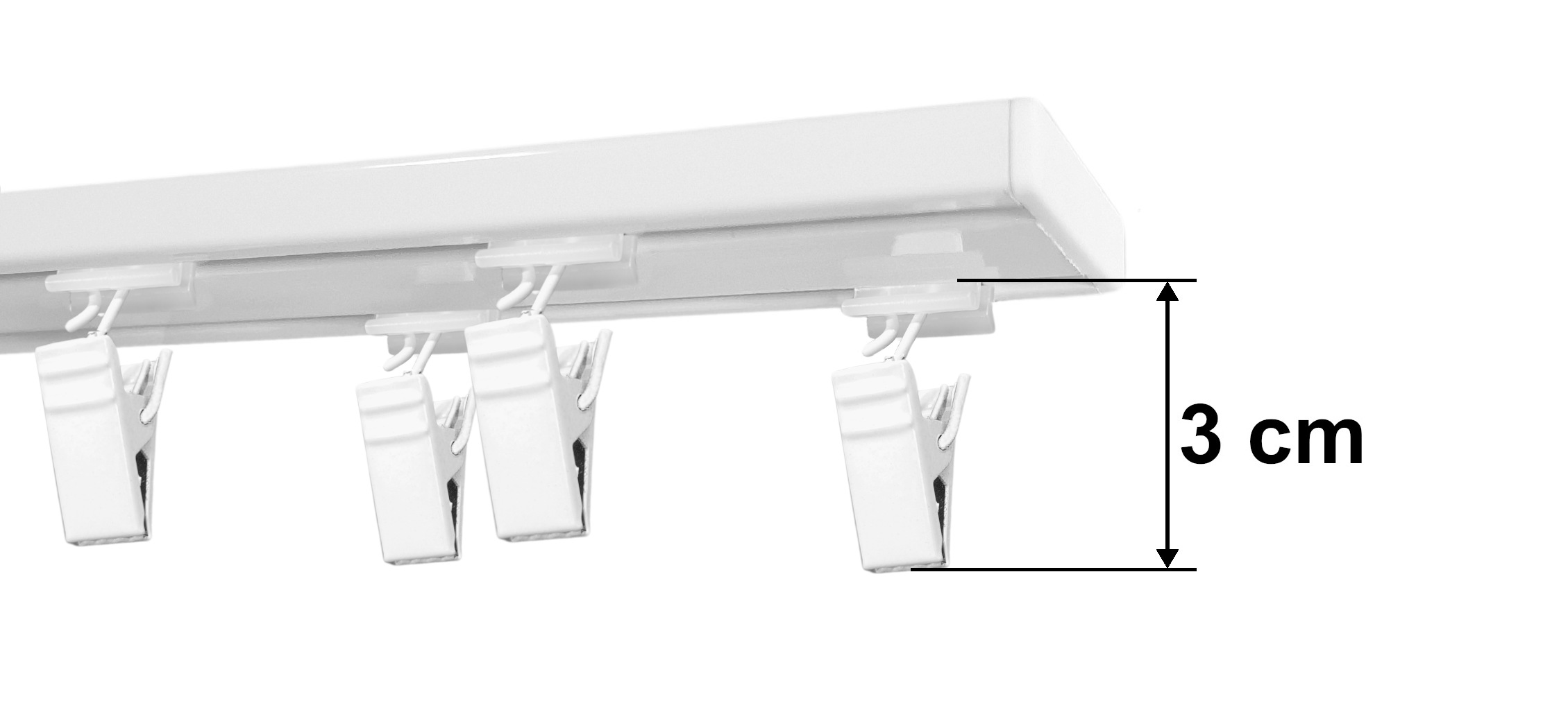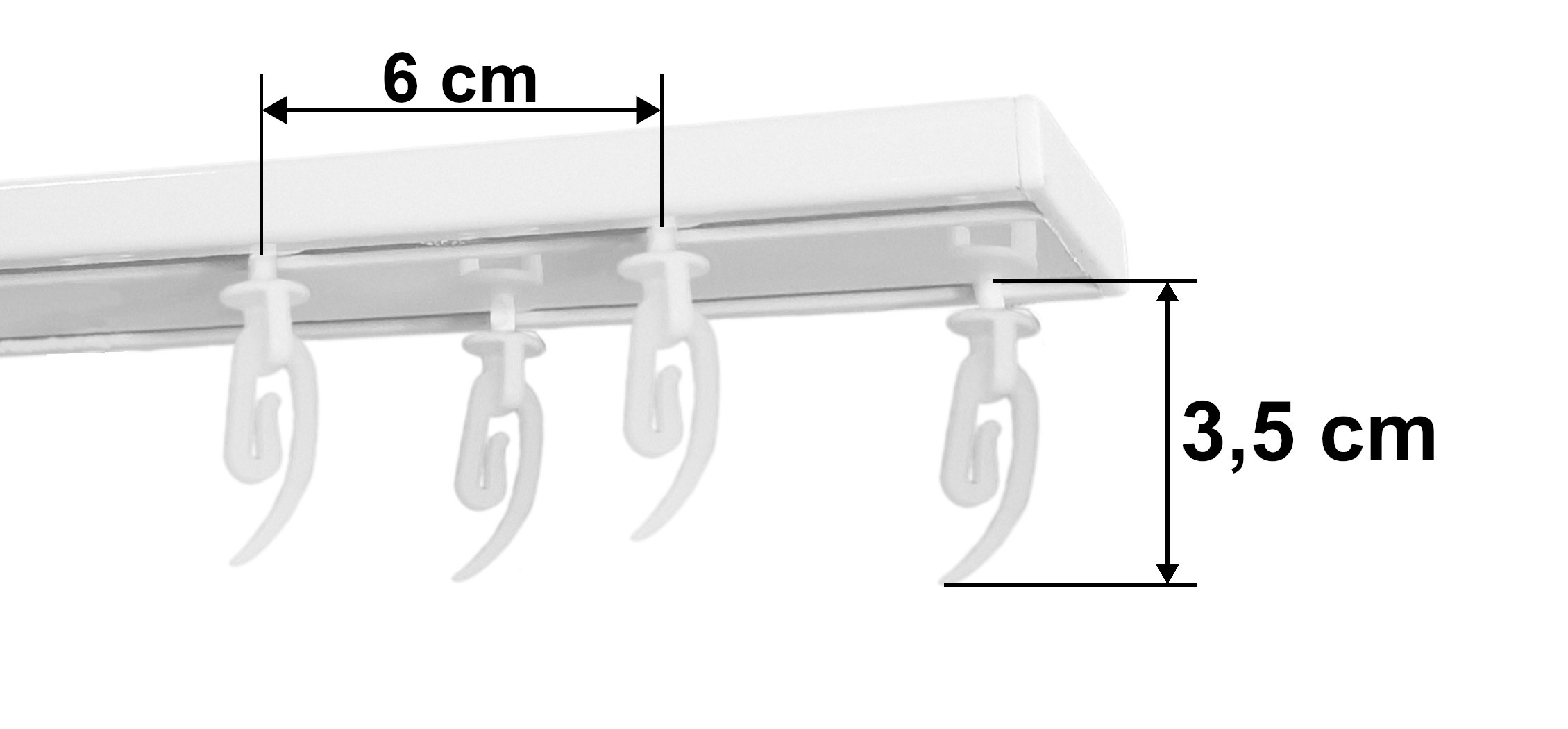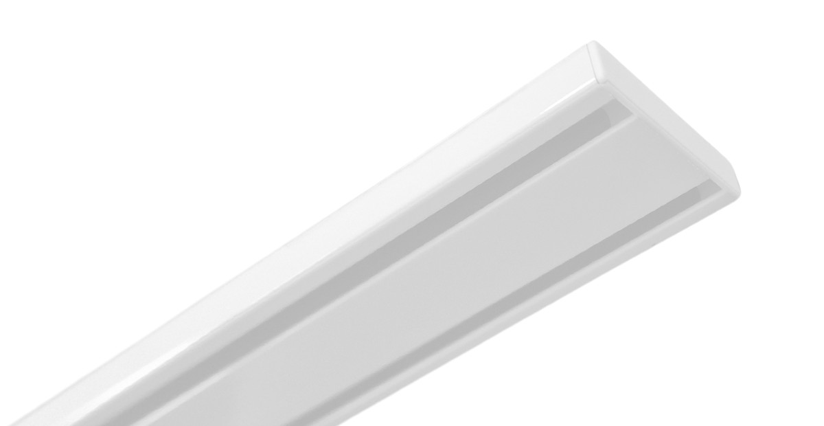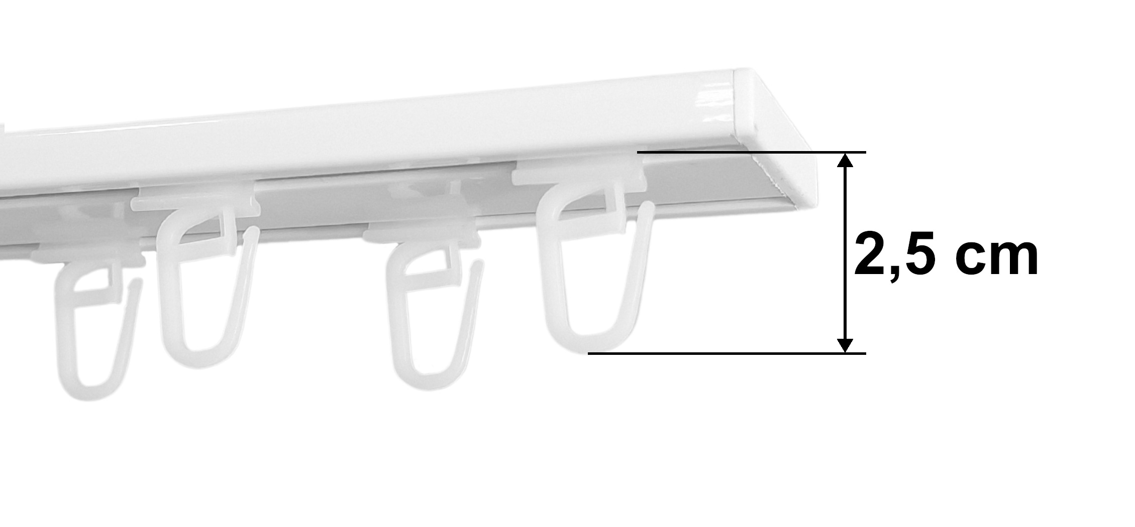 DUO-Aluminiumschiene in weißer Farbe (Gardinenstangen bis 240 cm Länge werden als Ganzes geliefert, über 240 cm in zwei gleiche Teile, z.B. Gardinenstange 400 cm ist 2 Stangen lang 200 cm)