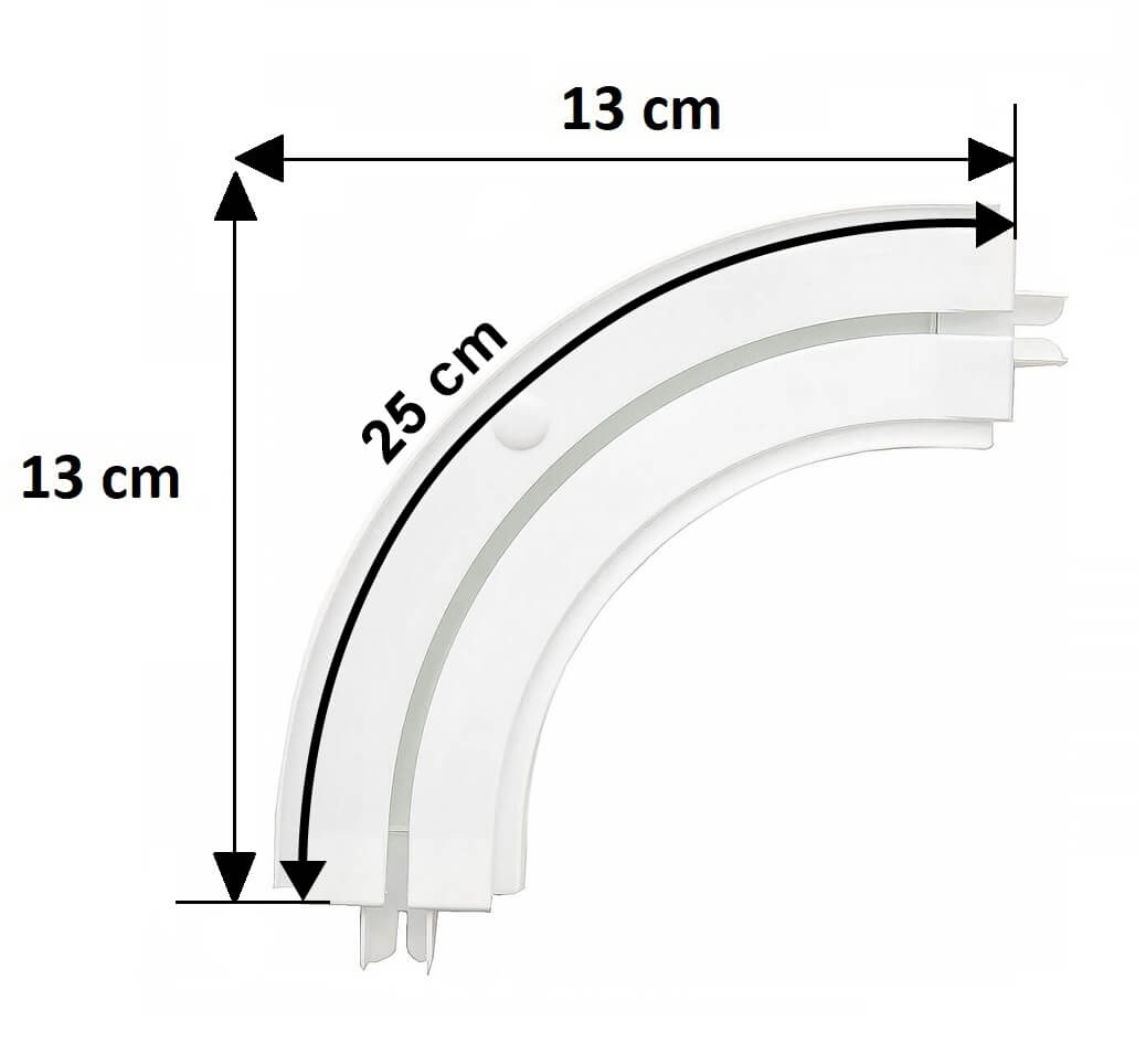 Durchgangsbogen für zweispurige PVC-Schiene – Produktcode: R/AK/LPSP/II