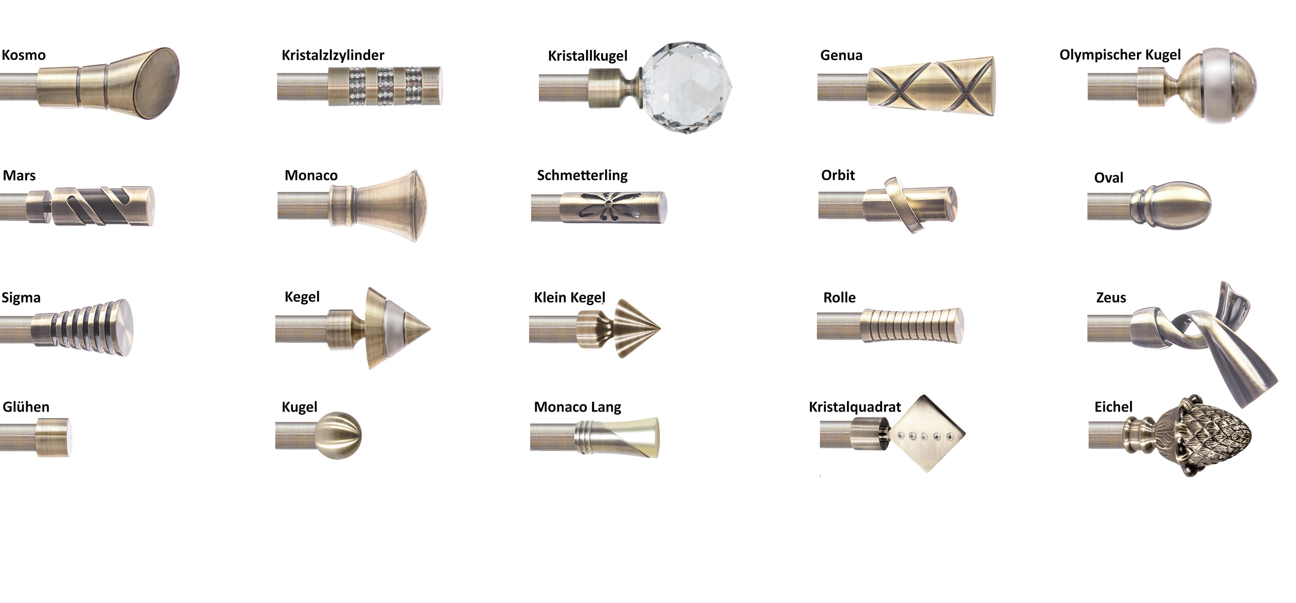 Endstücken für eine 19 mm Gardinenstange aus Metall