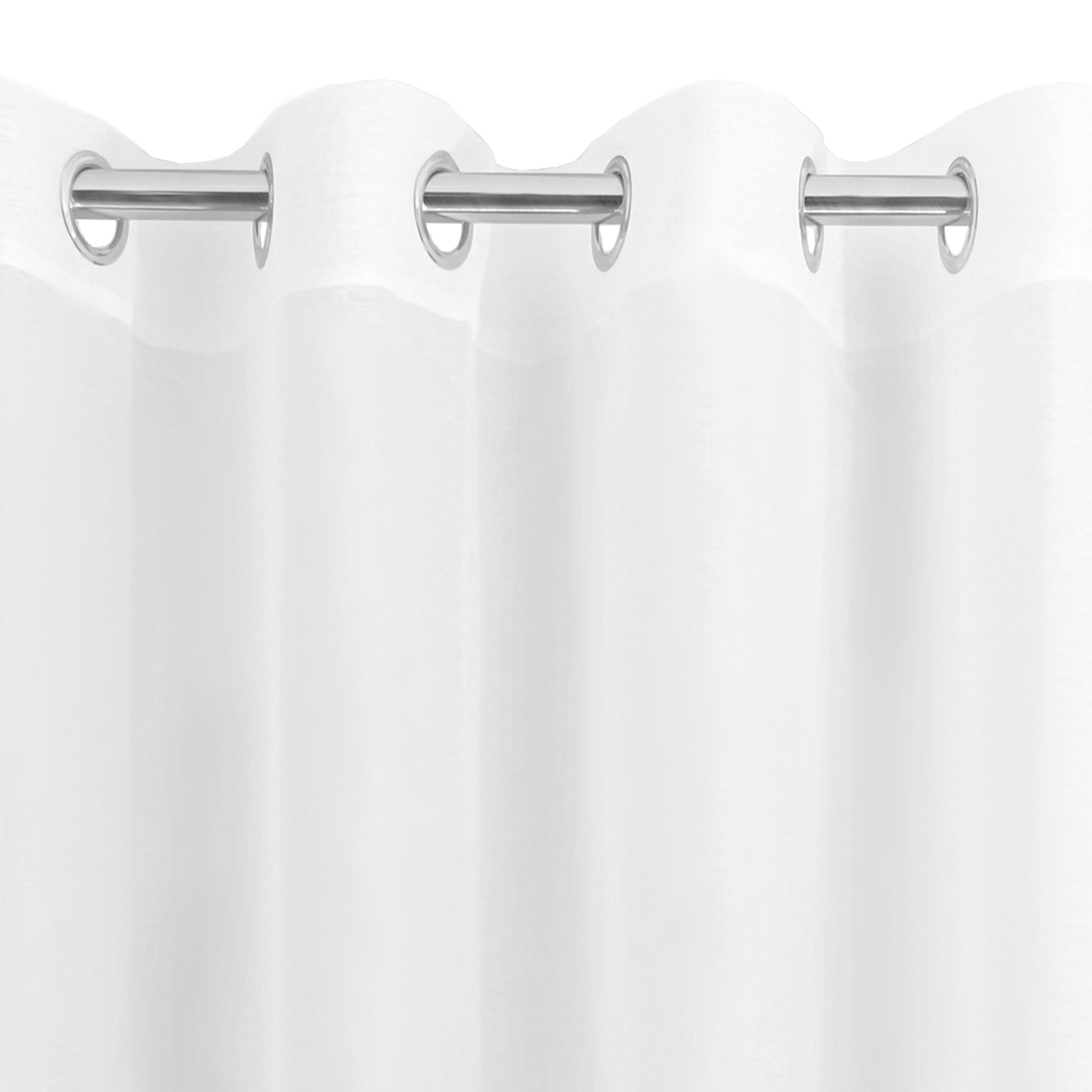 - Dank der Ösen wird die Gardine in regelmäßigen Wellen gelegt