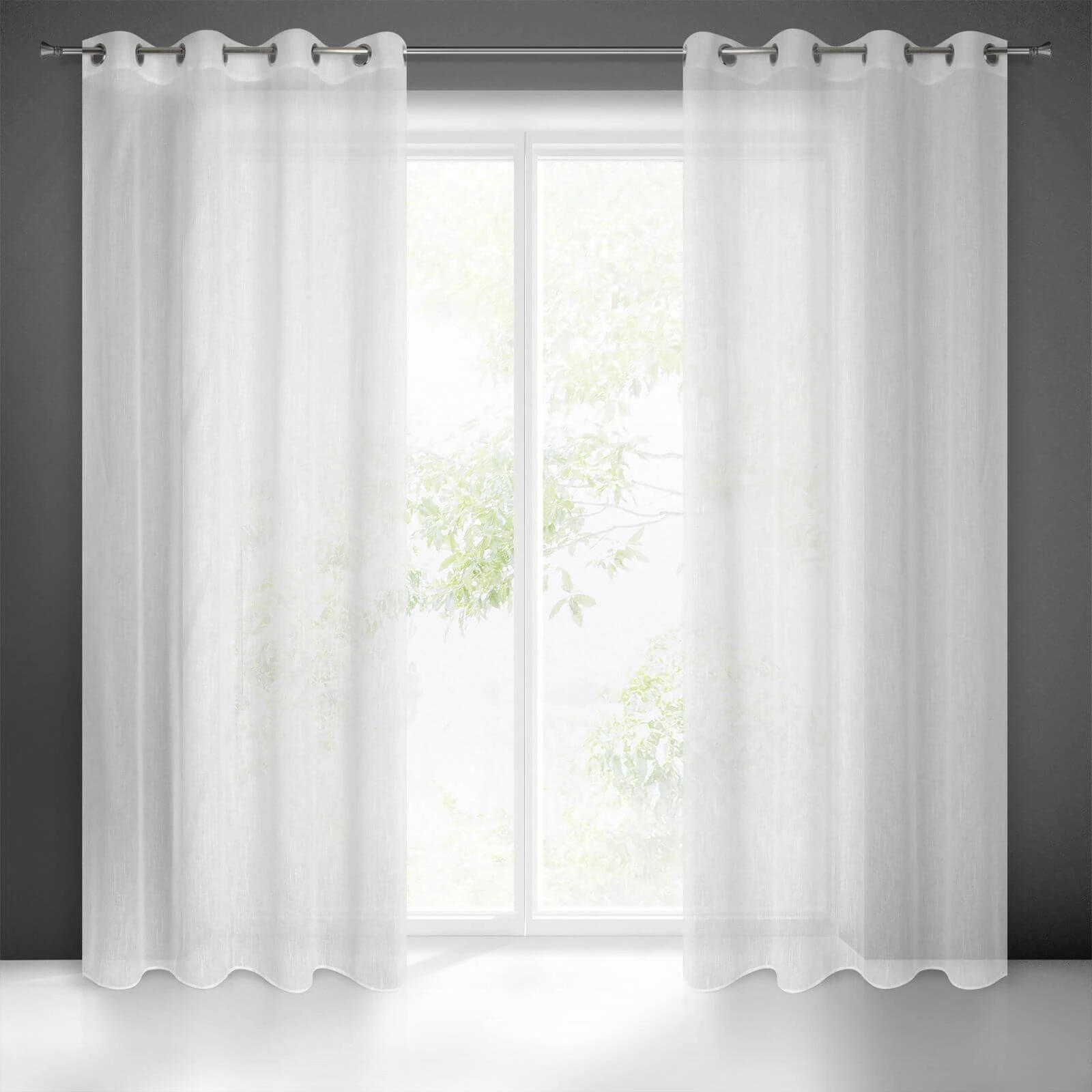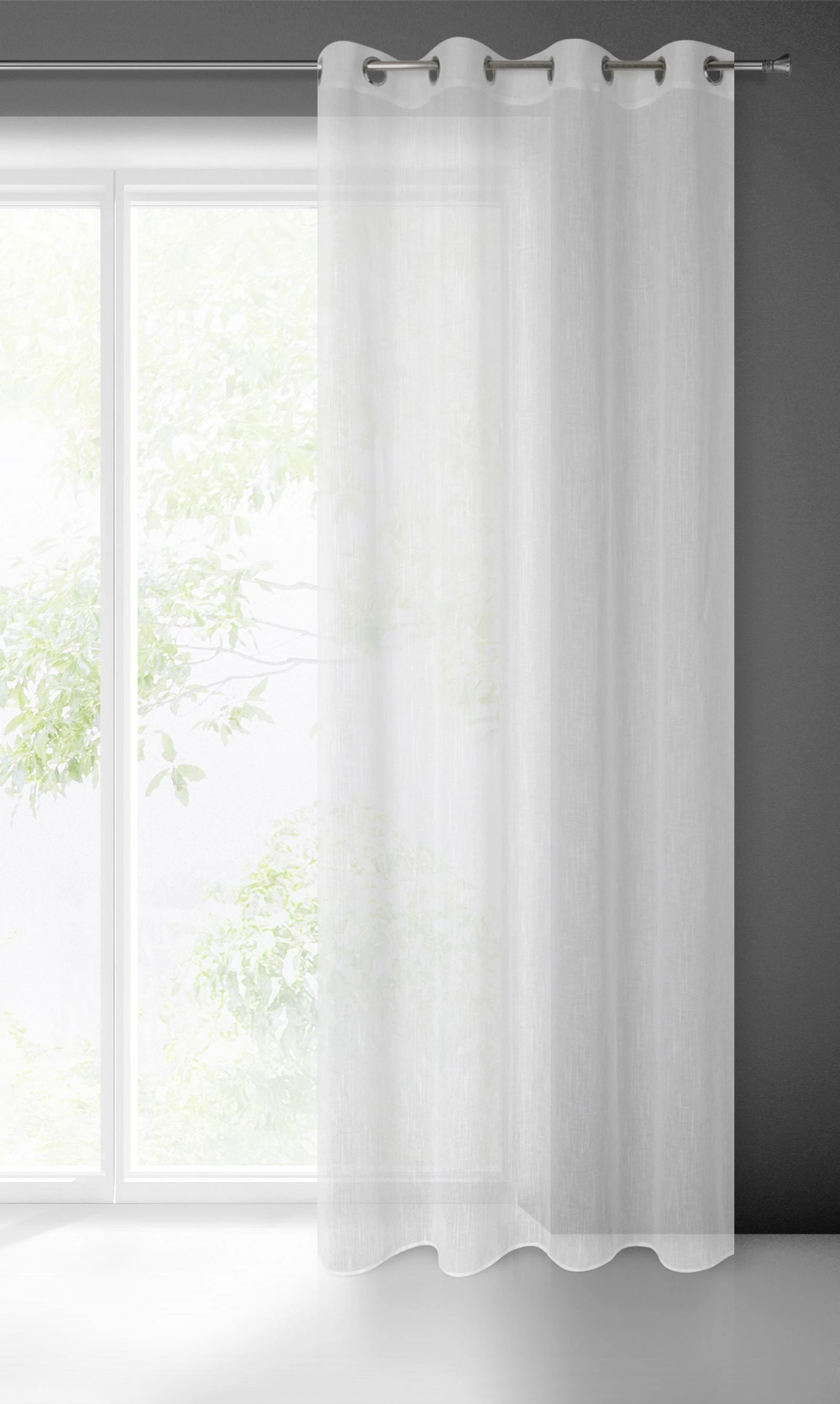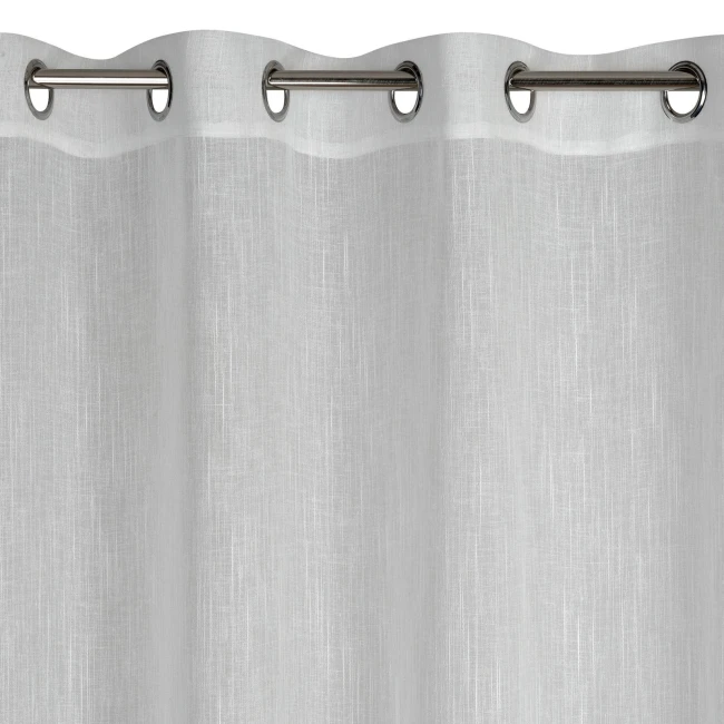 Fertigvorhang im Schneeweißton aus zartem Stoff mit gleichmäßiger Struktur. Der Voile wird den Innenraum optisch verändern und auffrischen.