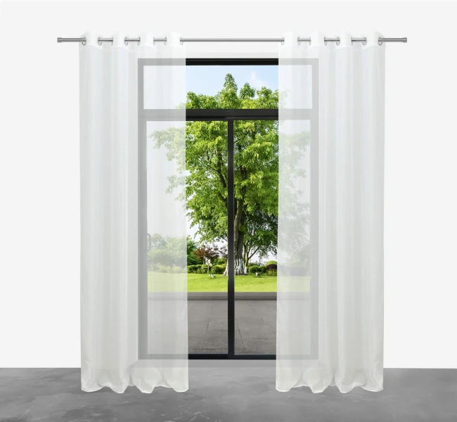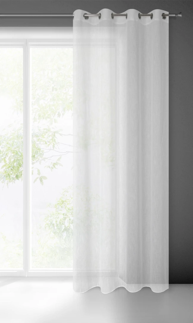 - Der glatte Voile ist der am häufigsten verwendete Stoff für Vorhänge im Wohn-, Schlaf- und Arbeitszimmer. Dort verleiht er dem Innenraum Leichtigkeit und Eleganz, sorgt für Privatsphäre und lässt gleichzeitig ausreichend Tageslicht in den Raum.