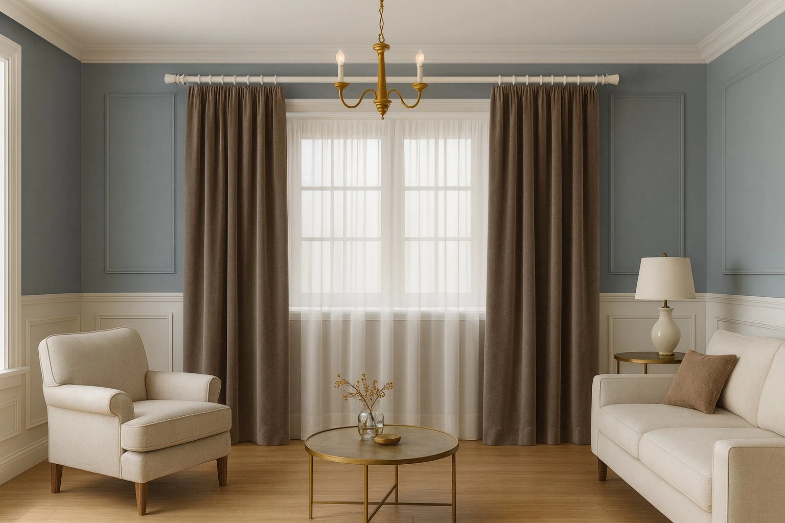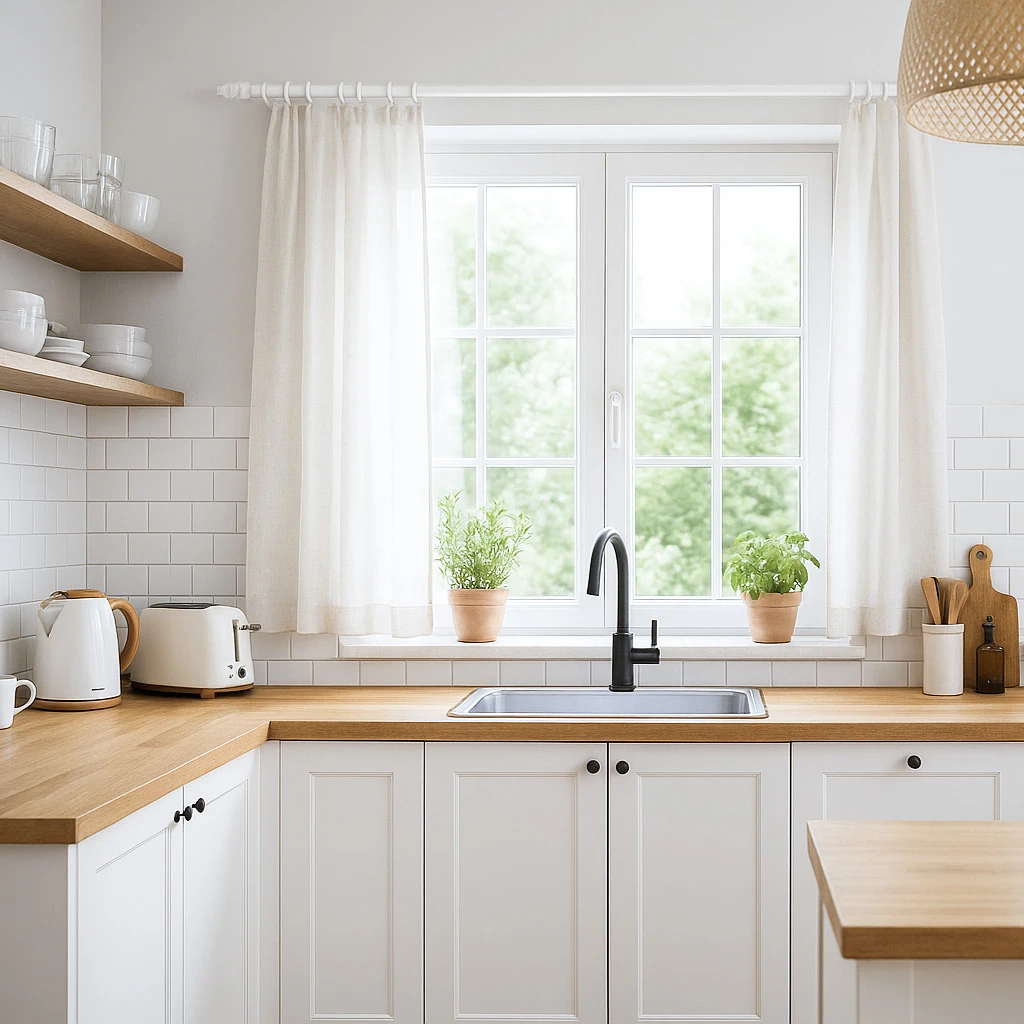 - Montagefertige Gardinenstange aus Holz mit Vollausstattung