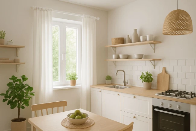 - Eine Gardinenstange aus Holz ist eine klassische Lösung für die Inneneinrichtung, verleiht dem Raum Gemütlichkeit und unterstreicht seine natürliche Schönheit