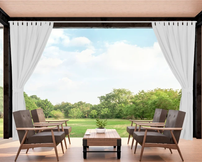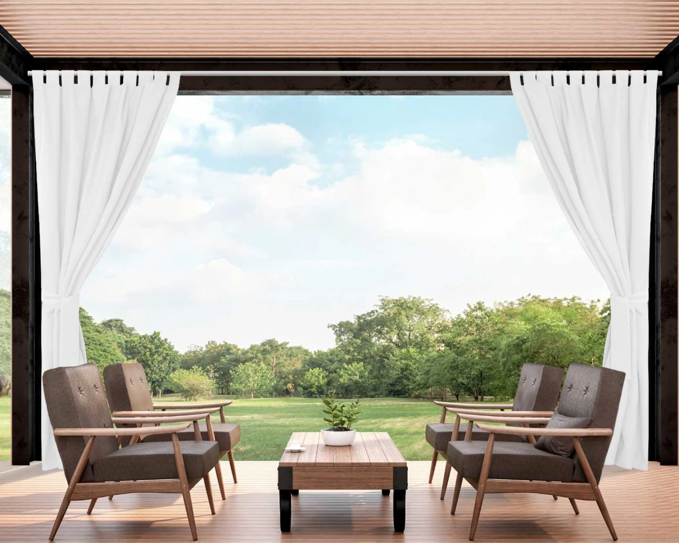 - Die Aufhängungen bieten die Möglichkeit, die Vorhänge je nach Wetterlage bequem ein- und auszuschieben
