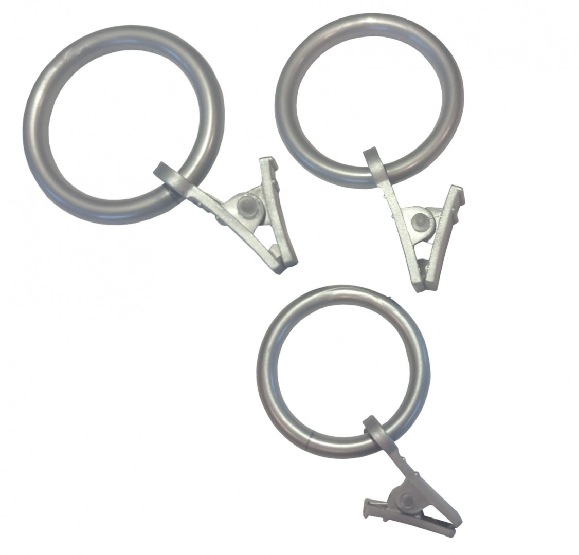 • Ringe mit Klammern - (aus PVC), im Set je 10 cm Rohrlänge 1 Stk., z.B. für eine 1-läufige Gardinenstange 200 cm legen wir 20 Stück bei