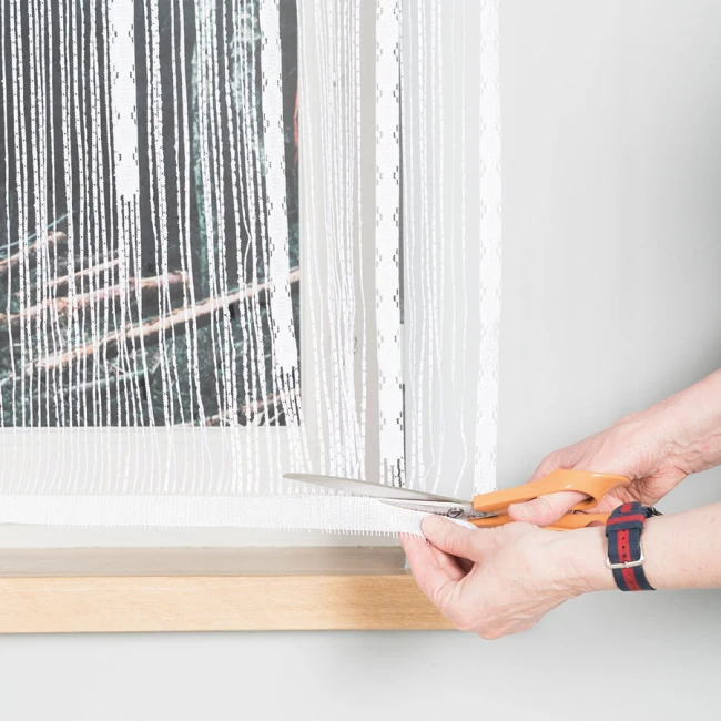 - Die Höhe kann durch Abschneiden der Unterseite des Vorhangs angepasst werden - die Kanten fransen nicht aus.