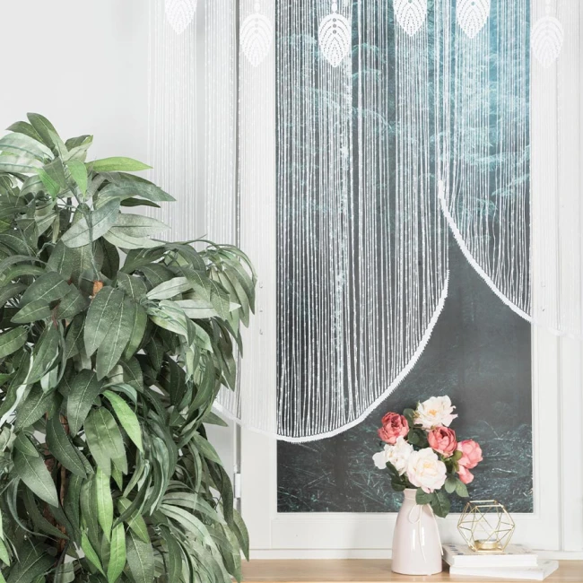 - Die weiße Farbe des Makramees macht es einfach, ihn mit verschiedenen Inneneinrichtungen zu kombinieren. Er eignet sich perfekt für: Wohnzimmer, Schlafzimmer und Küche.