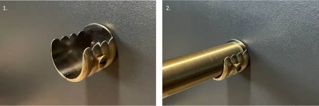 - Wird verwendet, um eine Gardinenstange in kleineren Räumen zu montieren, sodass sie an angrenzenden Wänden oder in Nischen montiert werden kann