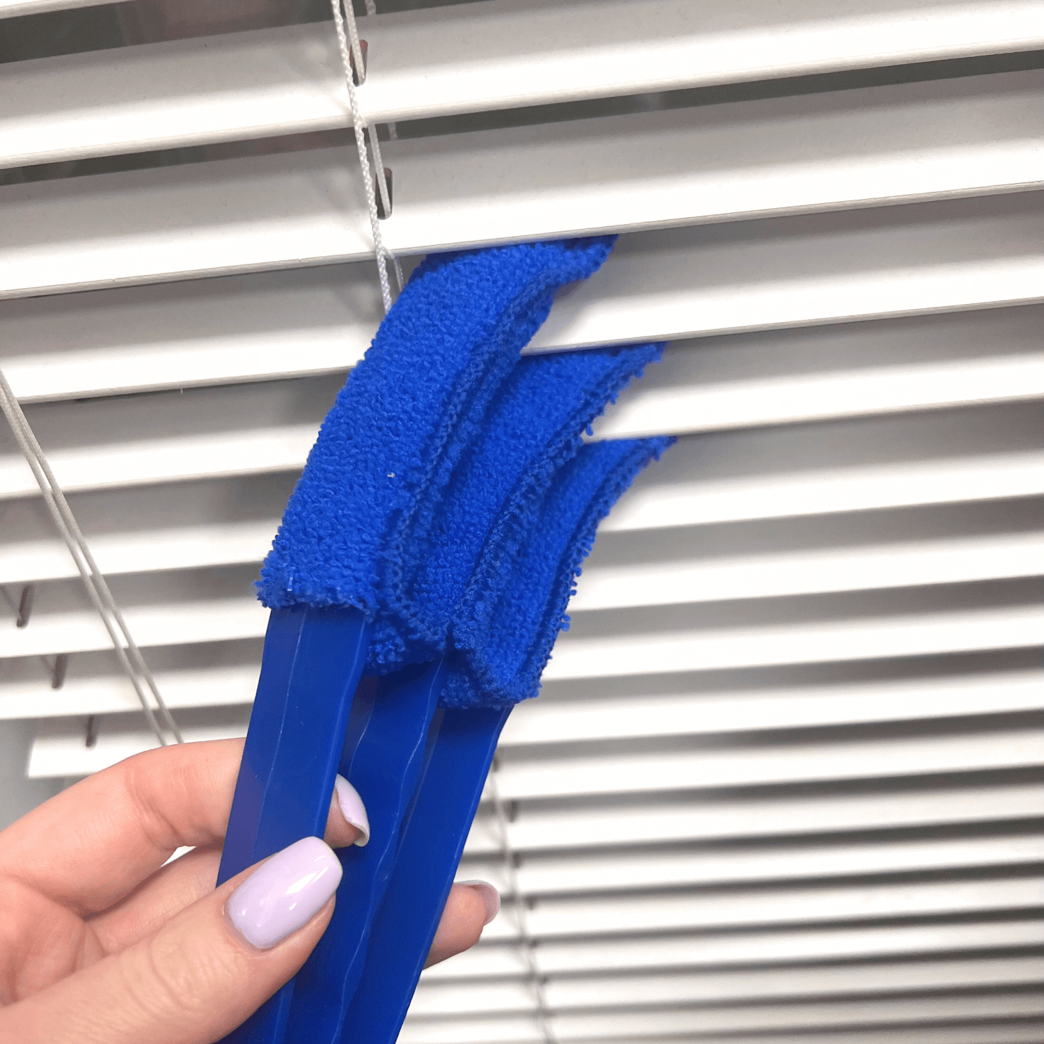 Die praktische Bürste hat drei speziell geformte Finger, an denen ein Mikrofasertuch befestigt ist. Ihre Form ermöglicht eine schnelle, einfache und gründliche Reinigung von Staub und Schmutz auf den Jalousien.