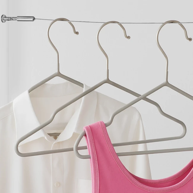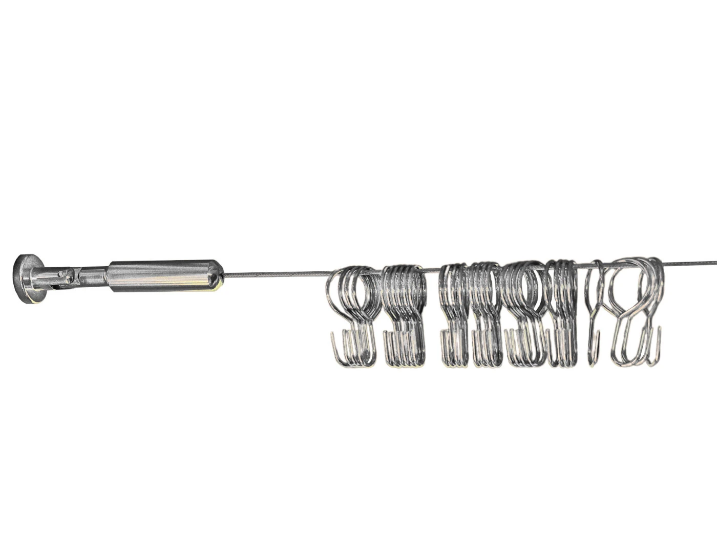 - Das Spannsystem mit Gewinde sorgt dafür, dass die Schnur richtig gespannt ist und sich nicht unter dem Druck schwerer Vorhänge verbiegt
