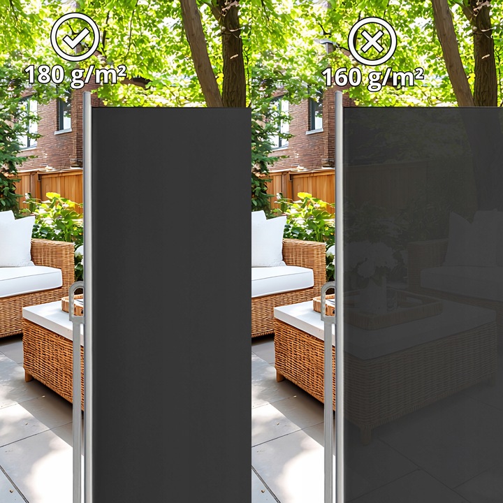 - Wetterfest - Die Seitenmarkise ist aus hochwertigen Materialien gefertigt und bietet Schutz vor UV-Strahlung, Regen und Wind.