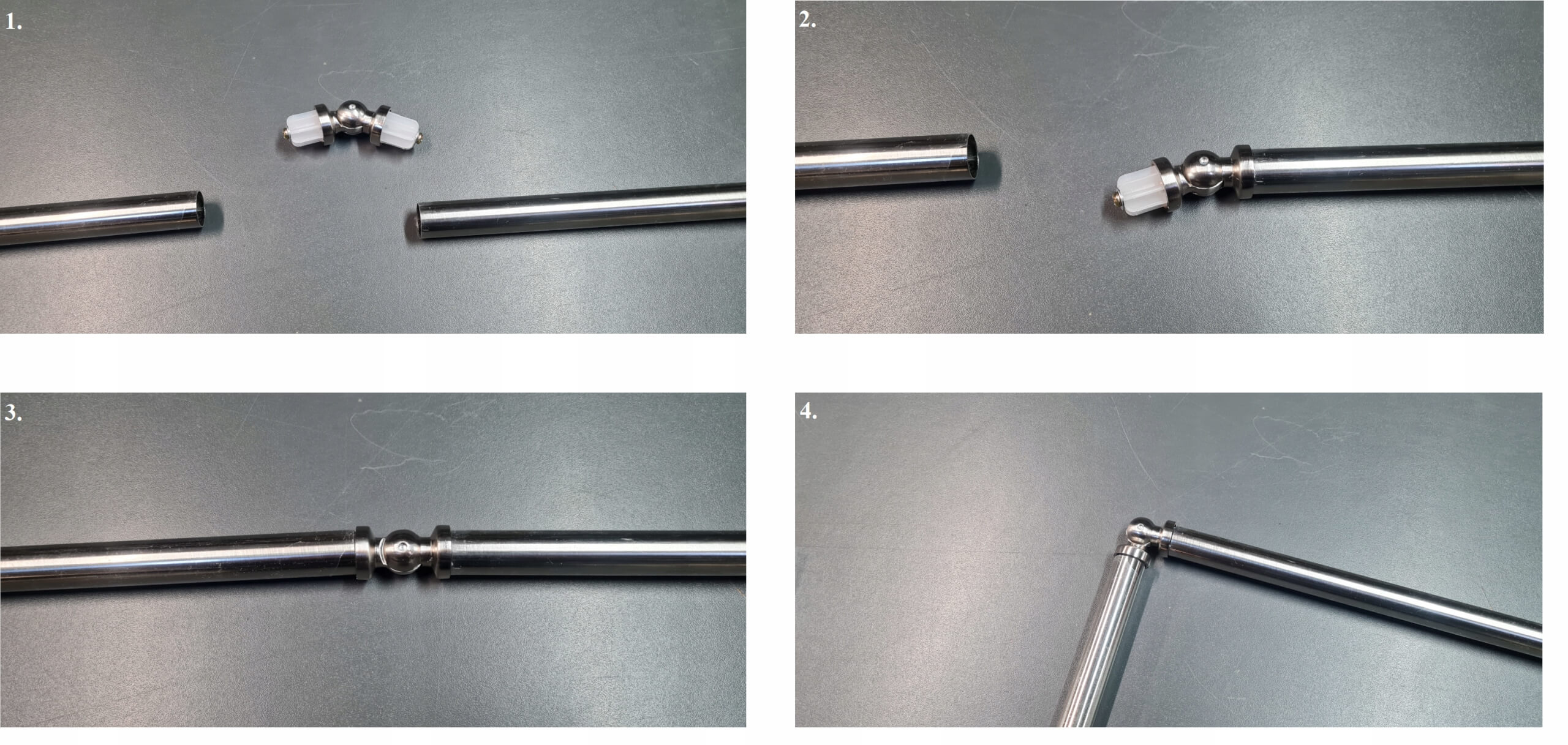 - Die Verbinder wird intern zwischen den beiden Rohren montiert und ist somit unsichtbar