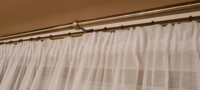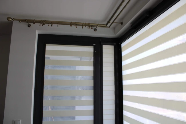 - Die Möglichkeit, die Gardinenstangen in den Ecken des Raums zu verbinden und die Gardinenstange selbst in jedem beliebigen Winkel einzustellen, der Bereich der Stangenverstellung von 90° - 180 °