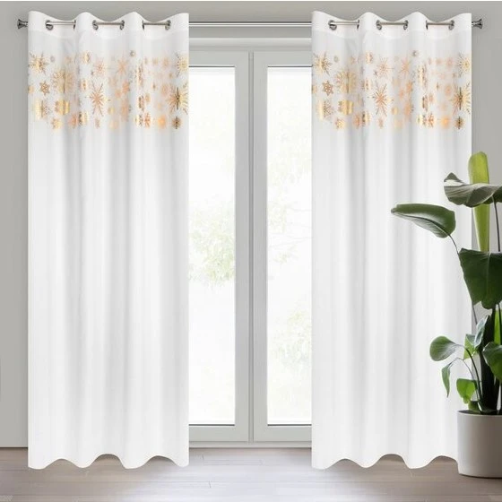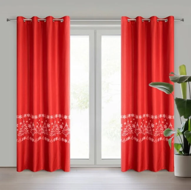 • Vorhang mit elegantem, weihnachtlichem Druck, der die Blicke auf sich zieht und eine besondere Atmosphäre schafft.